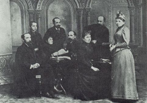 Rodzina Godlewskich. Siedzą od lewej: Emil, Maria z Popielów - żona Mścisława, Mścisław, Paulina z Woźniakowskich - żona Gabriela. Stoją od lewej: Mścisław (junior), Stefan, Gabriel, Waleria z Walchnowskich - żona Stefana.