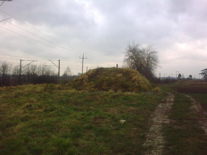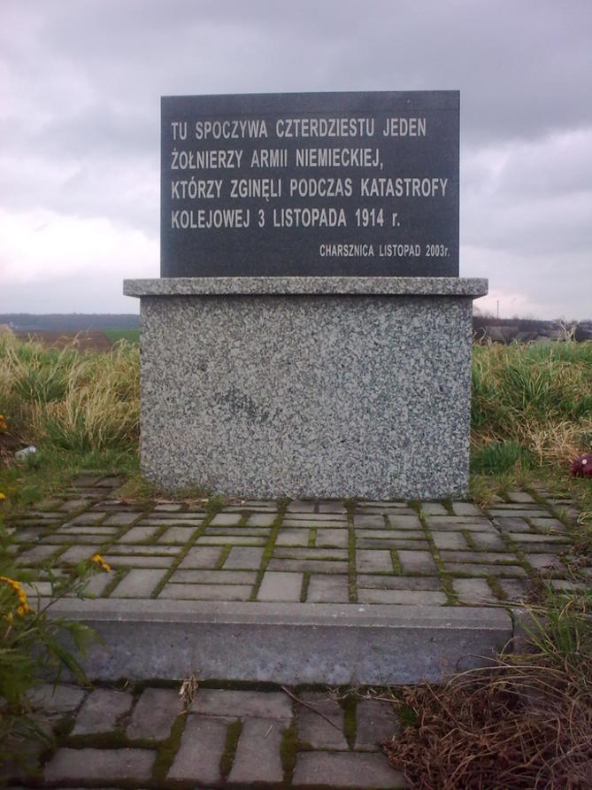 Mogiła znajduje się w pobliżu linii kolejowej Kielce-Katowice i ma formę niewielkiego pagórka usytuowanego na planie prostokąta. Początkowo na mogile znajdował się przedstawiony wyżej krzyż, w późniejszym czasie zamontowano tablicę/tablice z imionami i nazwiskami niemieckich żołnierzy, którzy zginęli podczas ekspolozji materiałów wybuchowych wywołanej zderzeniem pociągów. W piśmie z dnia 25 lutego 1928 roku podano, że "cmentarz wojskowy niemiecki mieści 3 groby, a mianowicie: grób ogólny mieszczący 40 osób z mogiłą u podnóża której - przy schodach wejściowych - znajdują się 2 groby z napisami 1) Lejtnant Herman Viczbej (Viebig?) i 2) Gefr. Eriel Meyer, 27/9.1914 r." Na szczycie mogiły znajdował się kamień z niemieckim napisem - Według J. Pałosza: Den Heldentod fur Vaterland erlitten im schwereren Dienst am 3/11 1914. Tekst podany w piśmie z 1928 roku zawierał literówki, co można zobaczyć na zdjęciu poniżej. Data na mogile u stóp kurhanu wskazywała, że gefr. Meyer zginął we wrześniu 1914 roku; być może był on żołnierzem armii austro-węgierskiej - mogłyby to potwierdzać słowa o "niemieckich i austriackich wojownikach" wypisane na krzyżu.