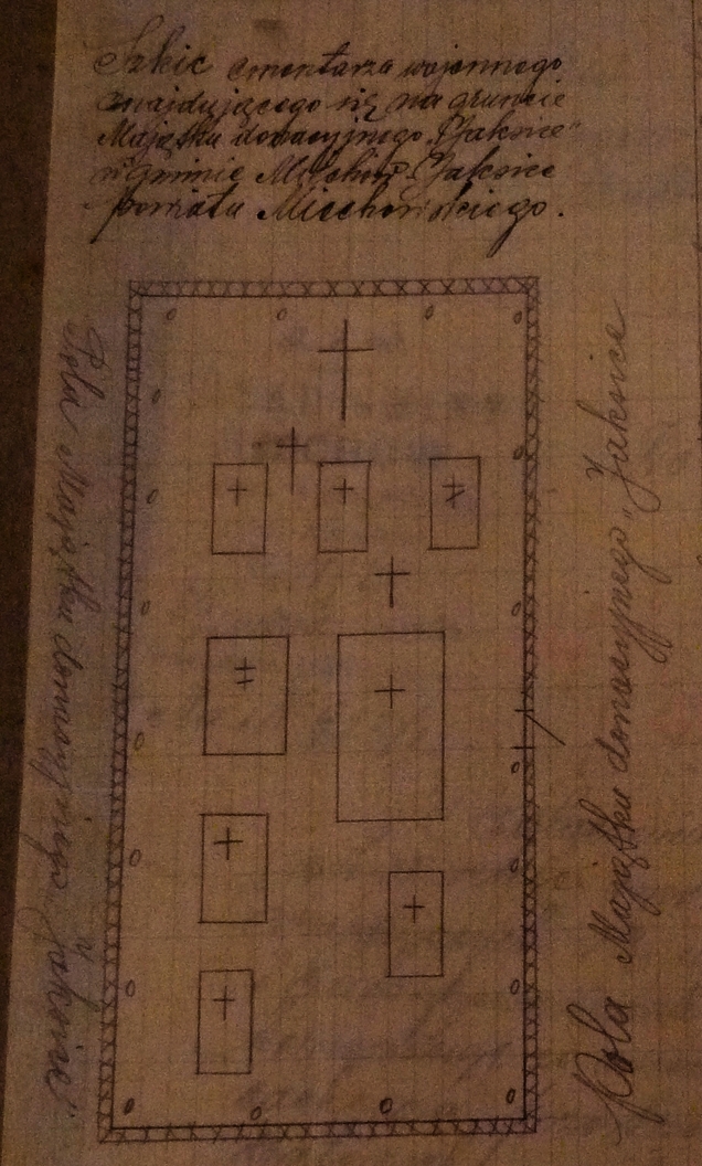 Wymiary cmentarza w 1928 r.: 23 m. x 14 m., wymiary mogiły 13 m. x 4 m.