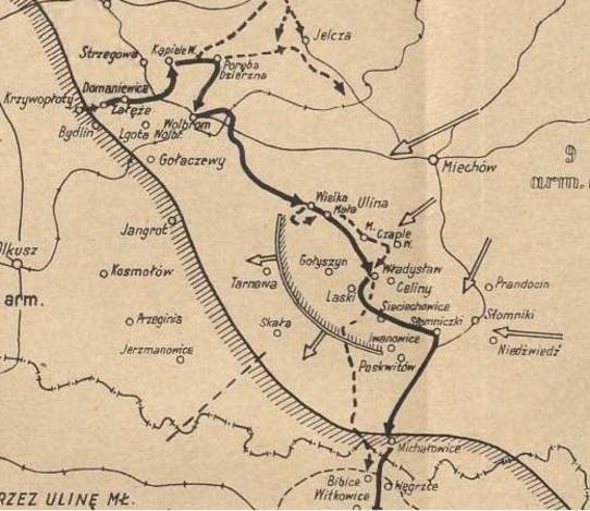Następnego dnia o świcie Piłsudski otrzymał od swego przełożonego, gen. Brandnera, rozkaz dokonania rozpoznania na linii Żarnowiec-Miechów.