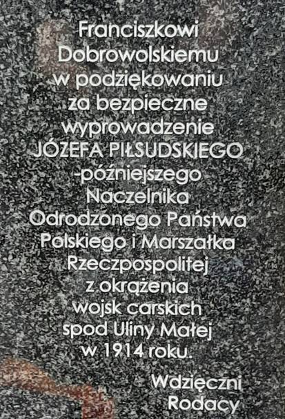 Franciszek Dobrowolski zmarł w 1934 r. i pochowany został na cmentarzu w Wysocicach. Dla upamiętnienia jego czynu, w 2022 r. staraniem panów Bronisława Nowaka i Jarosława Mudyna, przy wsparciu Towarzystwa Miłośników Odnowy Zabytków w Miechowie na mogile postawiono pomnik nagrobny.*Kozacy kubańscy – Kozackie Wojsko Kubańskie - jednostka organizacyjna Armii Imperium Rosyjskiego istniejąca w latach 1860-1918 na Kubaniu.