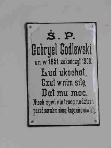 Na zdjęciu u góry: tablica pamiątkowa poświęcona Gabrielowi Godlewskiemu w krużgankach Bazyliki Grobu Bożego (w nowym miejscu, stan na rok 2017).