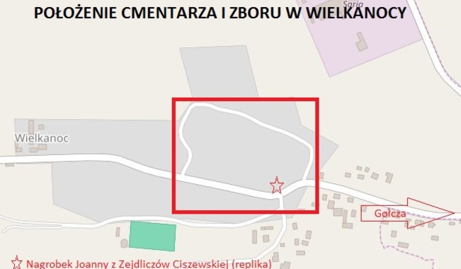 Krzyż na grobie Joanny z Zeydlitzów Ciszewskiej (zdjęcie obok), zmarłej w 1849 roku w Wielkanocy. Zastąpił on krzyż zabrany do parafii ewangelickiej w Żychlinie koło Konina w latach 80-tych. XX wieku. Tylko tyle pozostało w Wielkanocy po cmentarzu i zborze...