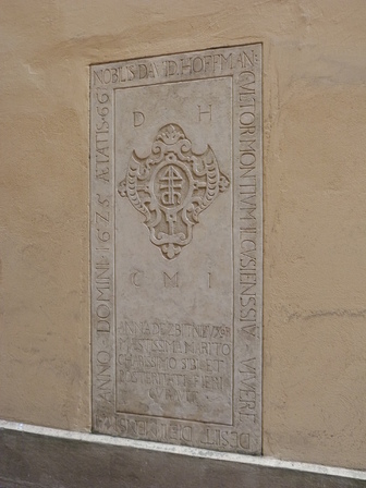 Płyta nagrobna z inskrypcją poświęconą Wilhelmowi de Thorntoun Rossowi. Wilhelm Ross był sekretarzem królewskim, administratorem ceł małopolskich i pocztmagistrem poczty królewskiej.