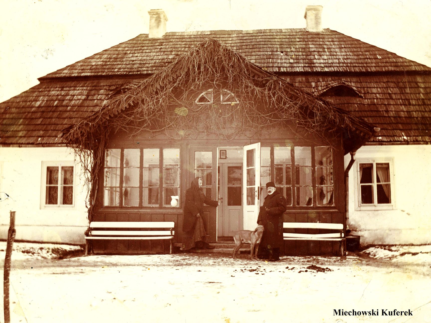 Adam i Teodozja Grabkowscy na tle dworu w Śladowie. Zbiory Andrzeja Zarzyckiego, kopię udostępnił Ireneusz Trybulec.